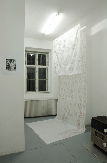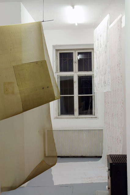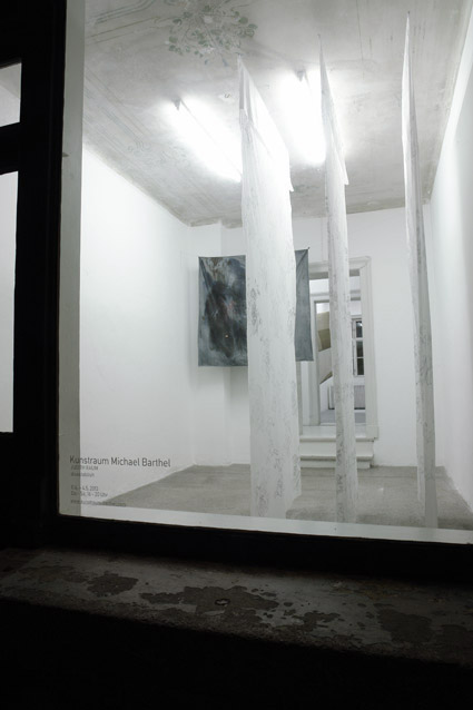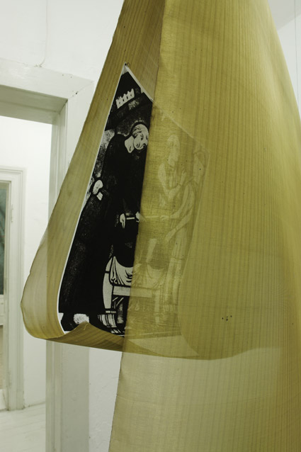 in der Ausstellung "disestablish" in Malerei, Objekten und Textarbeiten anhand der überlieferten Quellen.