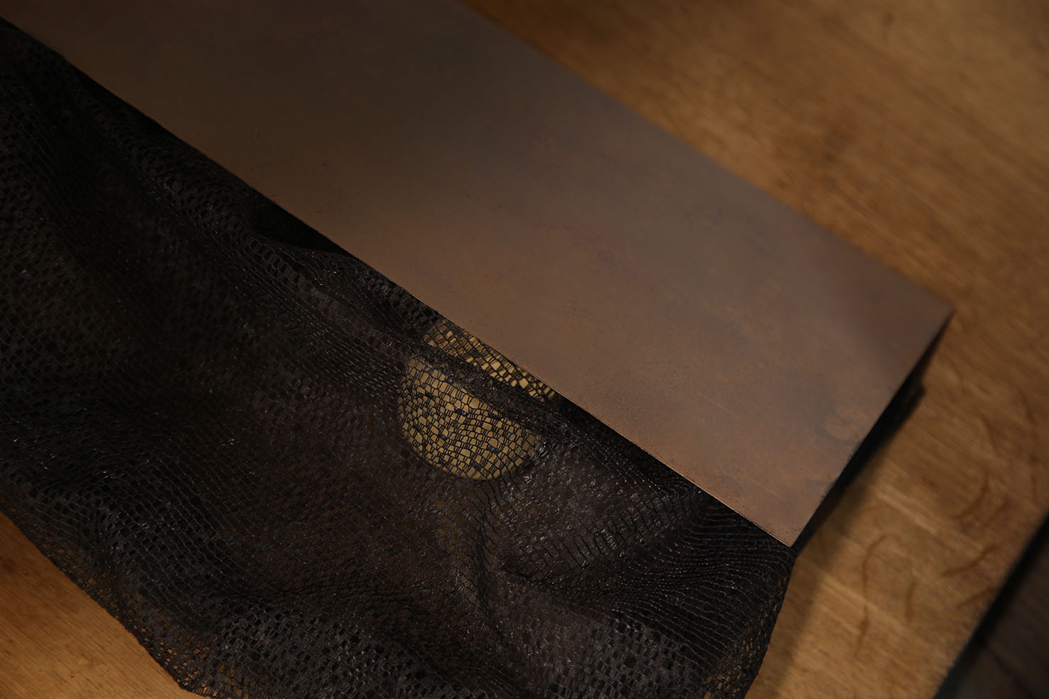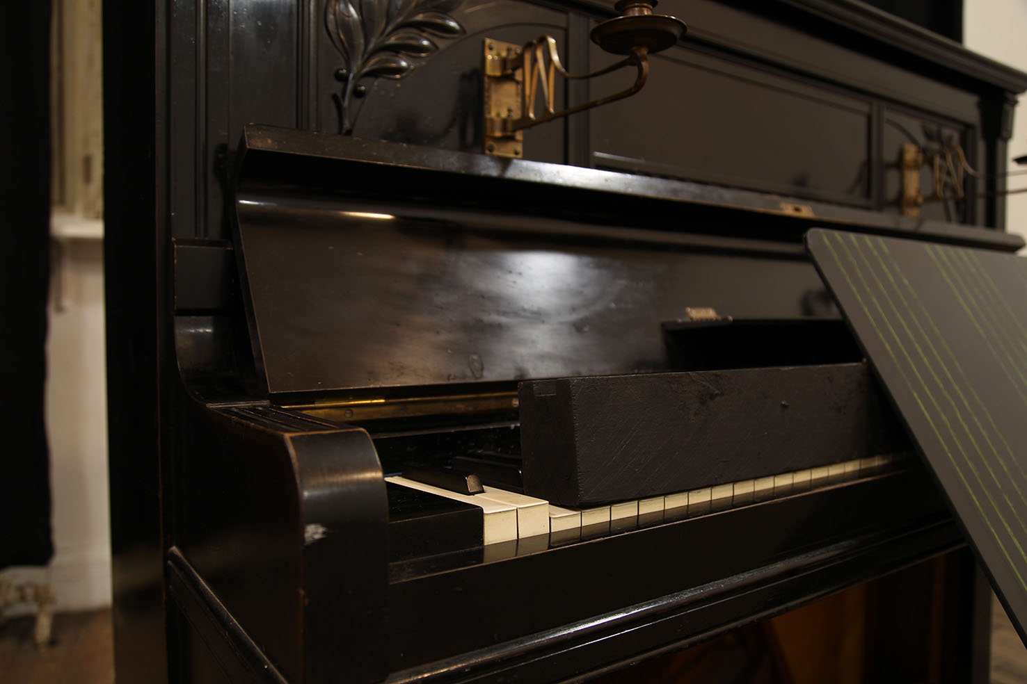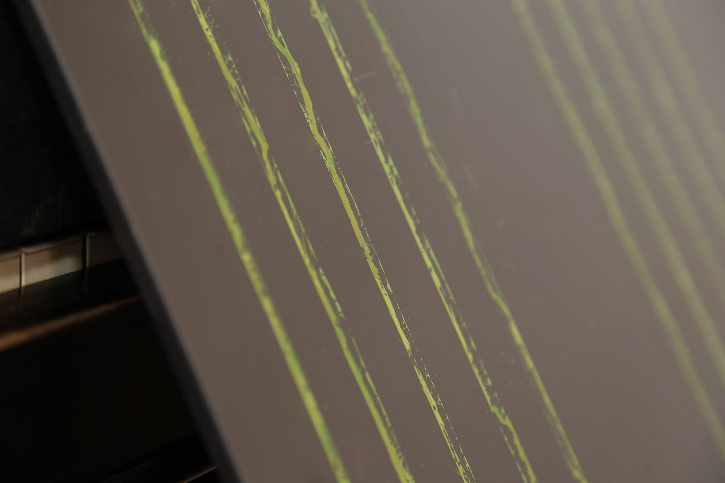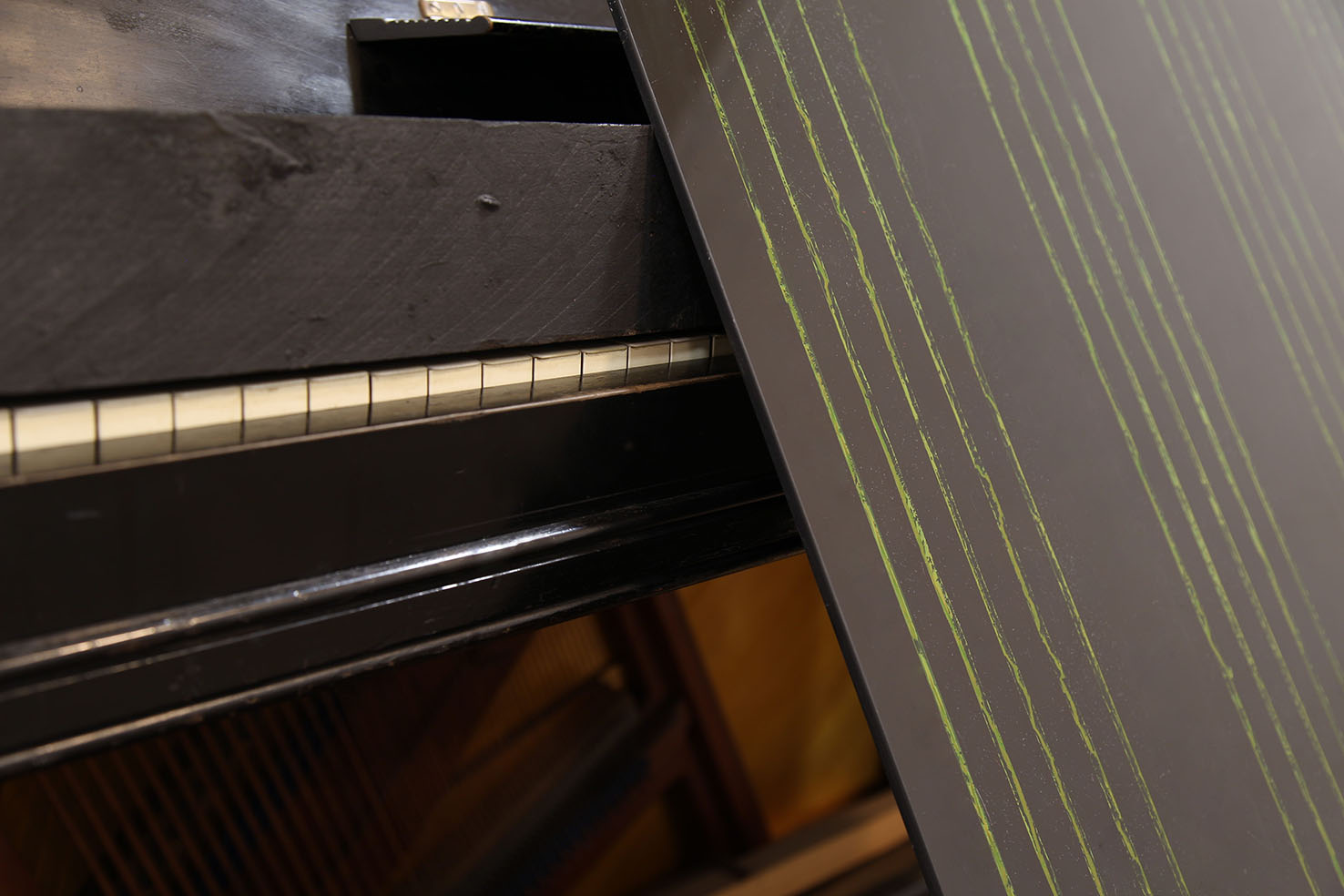 piano, found objects, mercurochrome on black glass, timber, ink on lacework, plastilina, Nyx skin foundation 'light neutral', Chanel natural finish pressed powder '30 naturel translucent 2', vegetal oil on paper, skin foundation and pressed powder on leather shoes, vegetal oil on blue frottage
